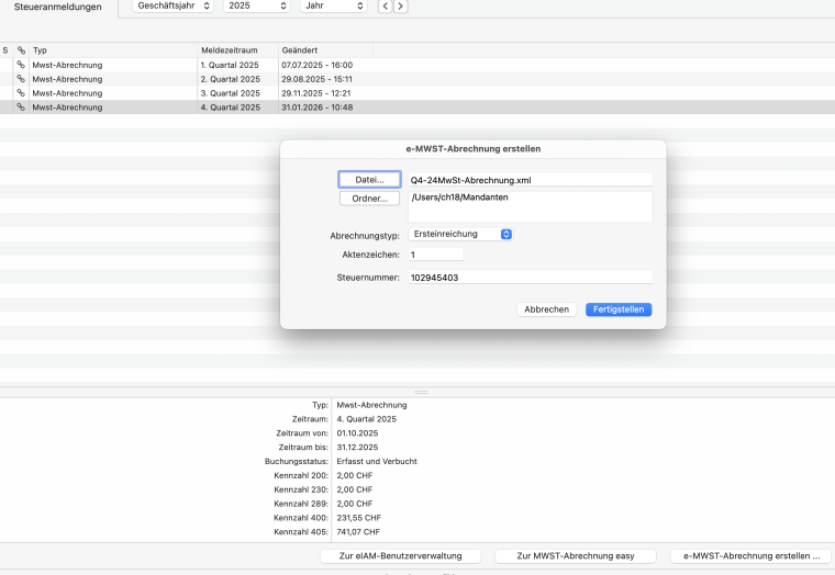 (Release 23.0.2, Apple macOS) - Liste Ausgabe als XML via e-MwSt-Abrechnung ab 2026