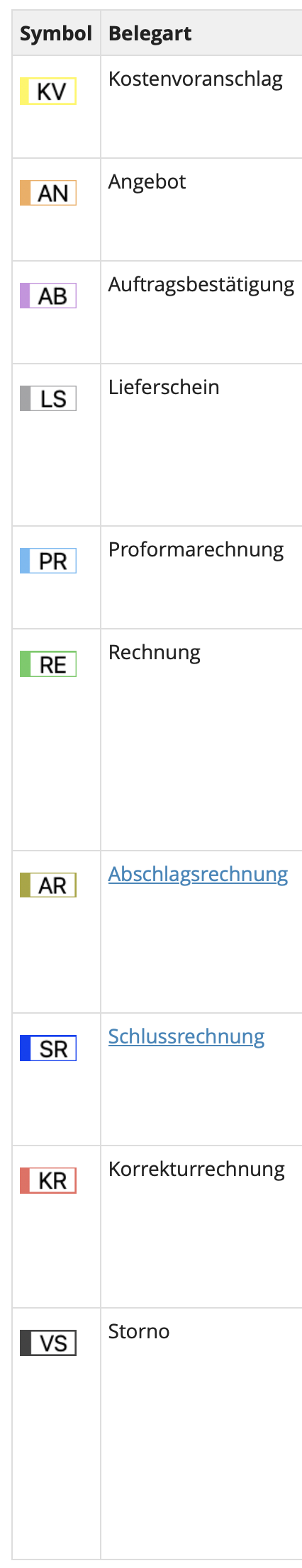 Finden Sie anbei die Übersicht der aktuellen Belegarten in shakehands Kontor